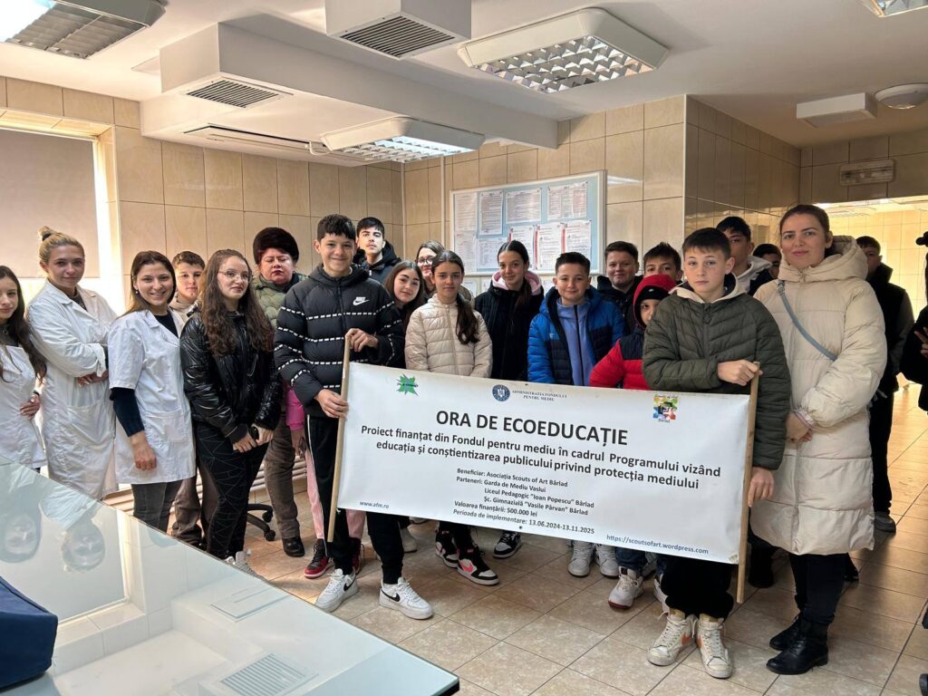 Acesta activitate a fost realizata în cadrul proiectului Ora de ecoeducatie, derulat de către Asociatia „Scouts of Art”, Barlad in parteneriat cu Scoala Gimnaziala V. Parvan Barlad, Liceul I .Popescu, Agenția Nationala pentru Mediu si Arii Protejate- Directia Judeteana de Mediu Vaslui Vaslui si Garda de Mediu Vaslui, finantat de Administratia Fondului pentru Mediu prin Programul privind educația și conștientizarea publicului privind protecția mediului.
